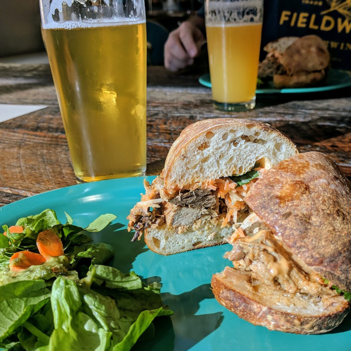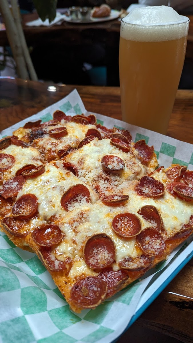 Fantastic beer options from lagers, saisons, and IPAs. (didn't try the darker stuff this time, but it's there!) Also delicious looking (yet very expensive) pizza in the same location. Nice outdoor seating and friendly staff! Definitely worth the stop!